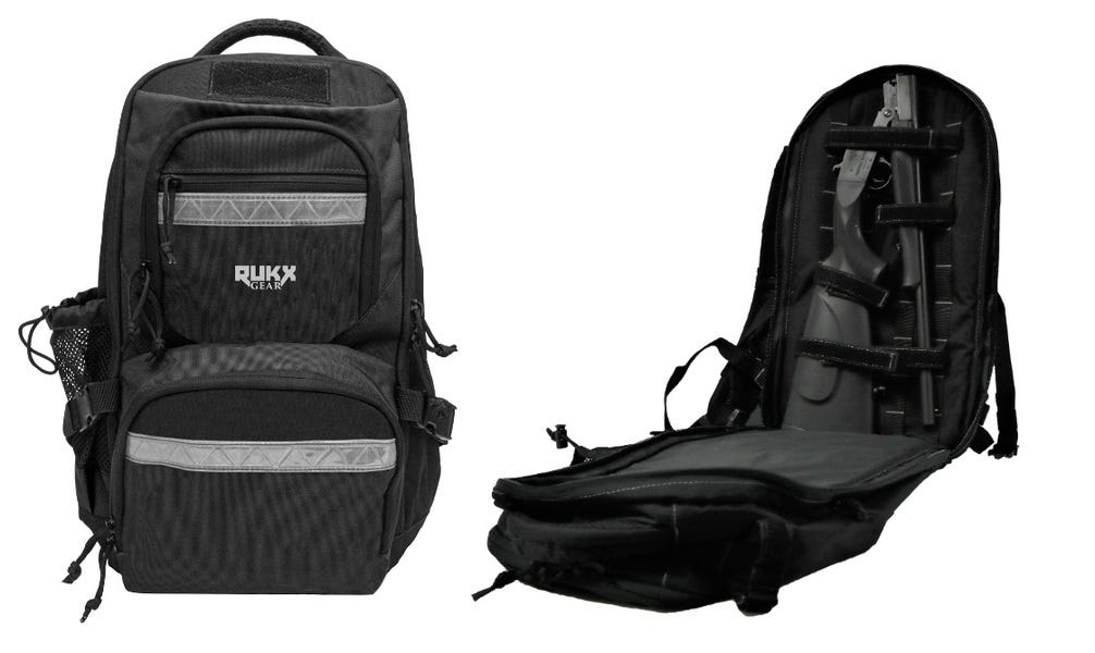 The ATI and Rukx combo the Nomad shotgun and Survivor three day backpack. This match-up comes with a Survivor three day pack custom fit to holster a Nomad single shot shotgun. The Nomad features checkered synthetic stock and forend, 3″ chamber, bead front sight and an 18.5″ barrel. The Survivor Pack features rear full open zipper pocket for discreet storage of the ATI Nomad, hidden handgun pocket, removable waist/shoulder straps, reflective strip for night safety, Velcro patch mount for customization, reinforced webbing, exterior drink pouch, durable non-rust zipper and pull tabs for easy access to all your gear and water resistant. Dimensions 20 x 11 x 10. backpack is Orange.