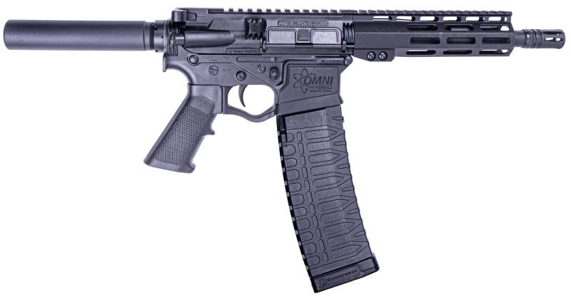 The Omni Hybrid Maxx is constructed with a hybrid polymer upper and lower, reinforced with metal, ensuring both strength and reduced weight. The 7.5″ barrel has a 1-in-8″ twist rate, optimized for stabilizing a wide range of bullet weights. The threaded barrel, with a 1/2×28 thread pattern, allows for the attachment of various muzzle devices, making it a versatile choice for different shooting scenarios.