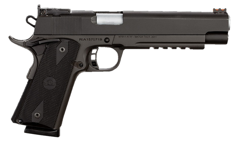 The PRO Match Ultra is a target grade pistol ready for competition right out of the box. This Rock Island Armory pistol has a 6″ barrel chambered in 45 ACP with 8-round capacity. It has an adjustable LPA rear sight and high visibility fiber optic front sight along with a skeletonized hammer and factory 4- to 6-pound trigger with adjustable over travel stop. The Rock Island Pro Ultra Match comes in a fully parkerized finish with checkered rubber grips, and a full length picatinny tactical rail.
