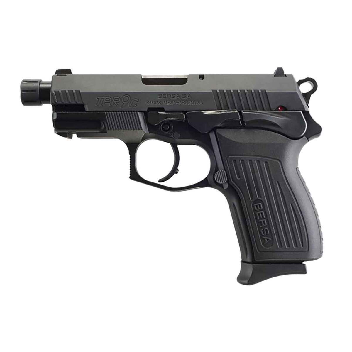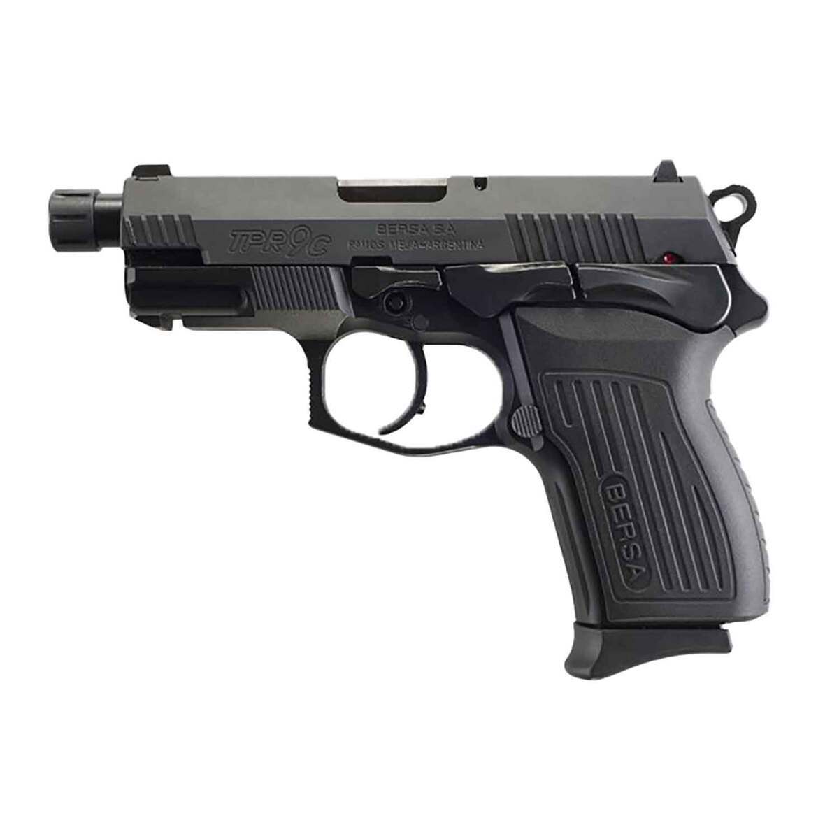 Bersa TPR9 Compact 9mm Luger 3.25in Matte Pistol – 13+1 Rounds. Extended slide release. Picatinny rail. 1/2×28 Thread pattern.