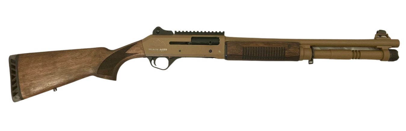 The Shotgun in Walnut/FDE from Black Ace Tactical is the perfect choice for anyone who wants a reliable semi-automatic shotgun. This gun has a 5 +1 capacity, allowing you to load up on shells and hit the range. This 12 Gauge Shotgun is compatible with Benelli M4 parts, so you can upgrade your gun as needed without having to change out the whole thing.