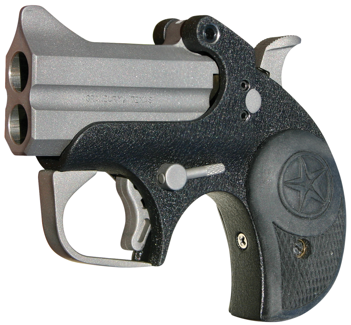 A pocket-sized derringer with a powerful punch, this Bond Arms Backup is perfect for concealed carry. The barrels are just 2.5” and made from steel, as is the frame, and sports a non-glare finish. Other features of the Backup include automatic extractors, rubber grips for a firm hold, cross-bolt safety, blade front and fixed rear sights, as well as a spring-loaded, cammed locking lever. It is also compatible with all Bond Arms barrels.