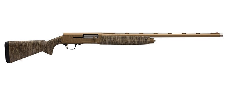 The A5 Wicked Wing Bottomlands model is equipped with a fiber optic front sight and an ivory mid-bead sight, providing excellent visibility and accuracy in various lighting conditions. The shotgun is designed with a Cerakote Burnt Bronze finish on the receiver, offering enhanced durability and corrosion resistance.