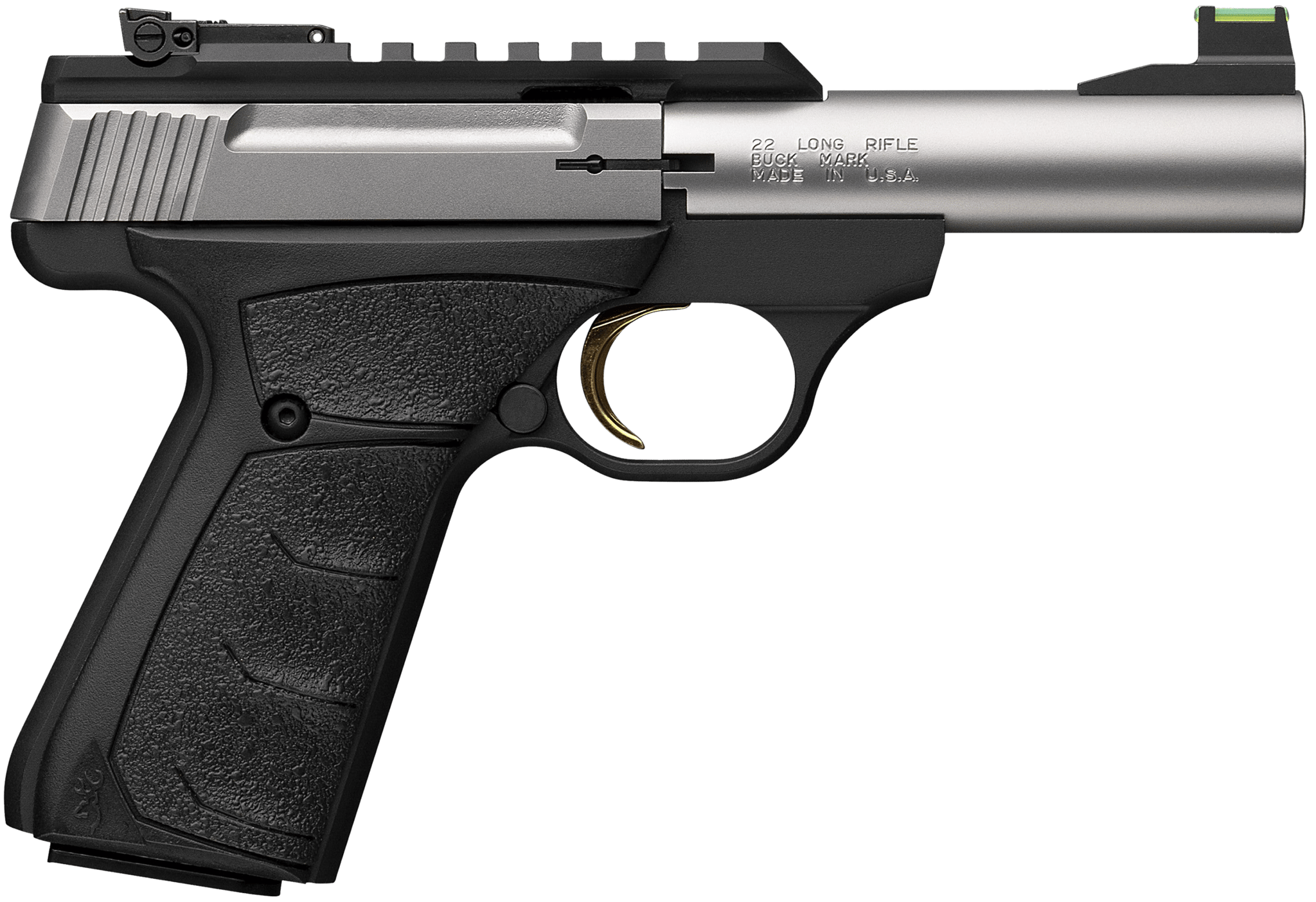 Browning Buck Mark Plus Micro Bull .22 LR 10+1 4″ Stainless Bull Barrel, Stainless Serrated Slide w/Picatinny Rail, Matte Black Alloy Steel Frame, Black Overmolded UFX Grip