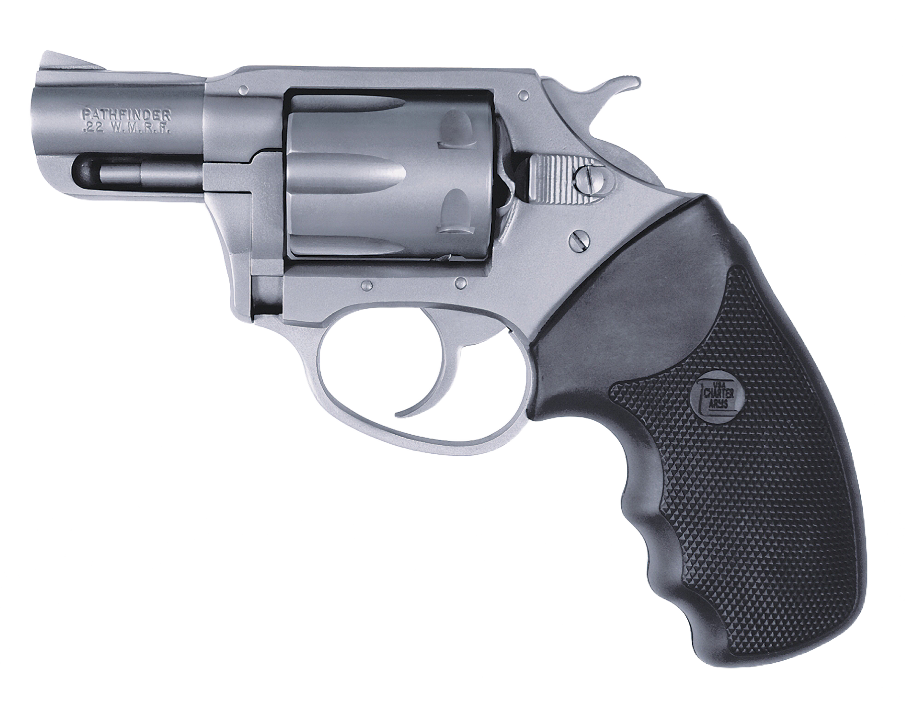 Action SADA – Caliber .22 Mag – Capacity 6 – Material Steel – Finish Stainless – Grip Full – Sights Adjustable – Barrel Length 2 – Weight 19 oz – Charters Pathfinder is a great introductory revolver for the novice shooter. It has the look feel and weight of a higher-caliber revolver allowing you to gain proficiency while using relatively inexpensive .22 ammo. – The .22 pathfinder can turn a few tin cans into an afternoon of fun.