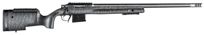 Designed to handle long range tactical and precision shooting applications, the BA Tactical is well equipped for most challenges. The Black Nitride action is machined to include a 20-MOA integral rail, fitted to a target contour Christensen Arms carbon fiber barrel, and paired with a stainless steel side-baffle muzzle brake. The adjustable tactical carbon fiber composite gunstock includes a bottom picatinny rail, five flush cup mounts, and a detachable box magazine. The BA Tactical weighs in starting at 7.4 pounds and is backed by the Christensen Arms Sub-MOA Guarantee.