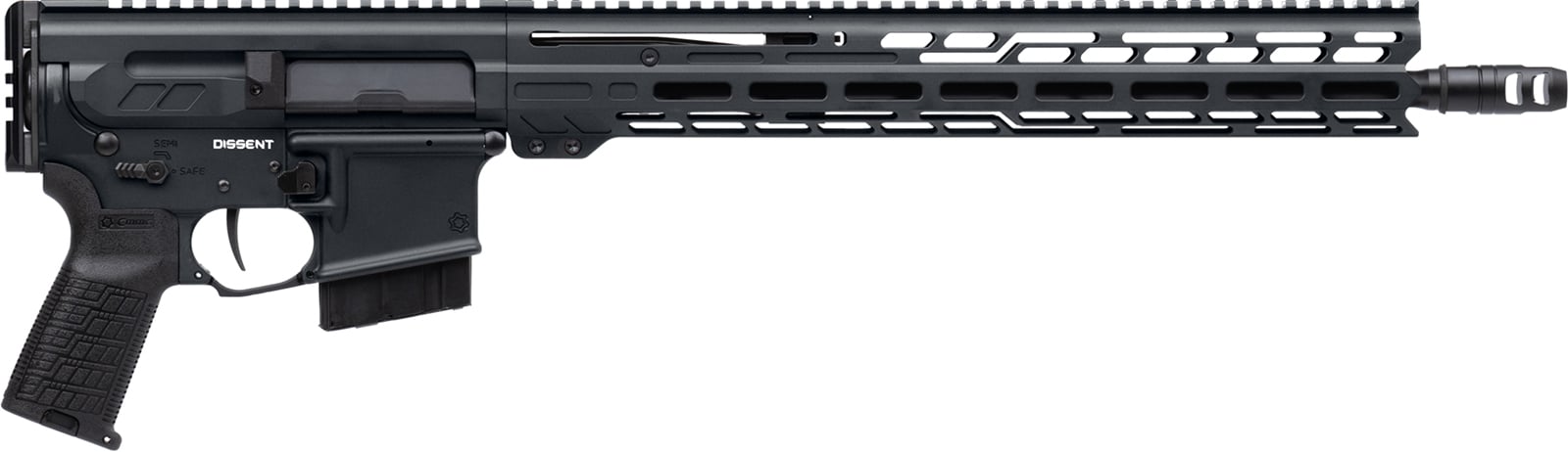 New for 2025, the Dissent now comes in Hornady’s .338 ARC cartridge, combining the AR15 platform with the stopping power of a large bore caliber. This model includes a Z-series muzzle brake and CMMG’s proprietary MLOK handguard. It comes in a rifle configuration with a 16.1-inch barrel and Sniper Grey Cerakote finish, as well as a 10-round magazine included.