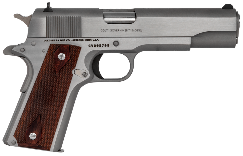 Colt 1911 Government Stainless .45 ACP 5″ Barrel 7-Rounds Rosewood Grips