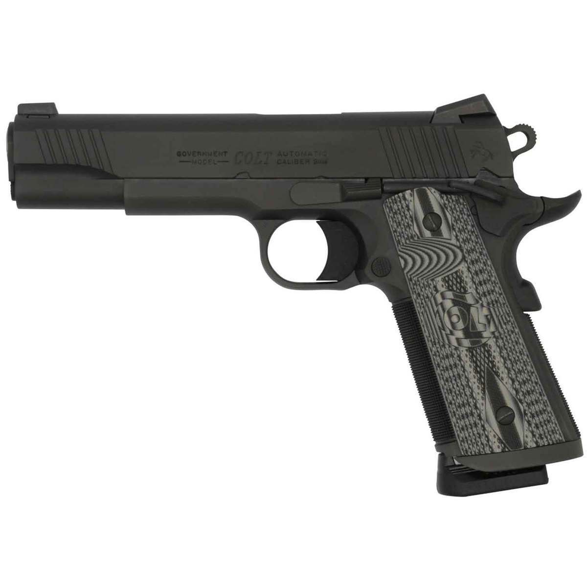 The matte black DLC coated stainless steel frame is corrosion-resistant and EDC-friendly. Custom G10 grips and 25 LPI checkering provide steady traction all around, and an undercut trigger guard and upswept beavertail safety command proper hand placement for accuracy and recoil control. Front and rear angled slide serrations and an extended magwell support quick reloads, while Novak sights quickly form an uncluttered sight picture. Colt’s Series 80 firing system and National Match Barrel ensure safe and precise shooting.