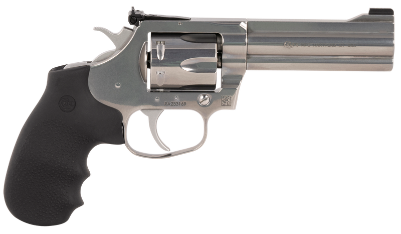 The Colt King Cobra Target was thoughtfully engineered to adapt the powerful .357 magnum King Cobra revolver to the competitive range. This Colt features a 4¼” barrel, adjustable rear sight, elevated front night sight, and Hogue grips, the King Cobra Target is the third model in Colt’s re-imagined King Cobra series.