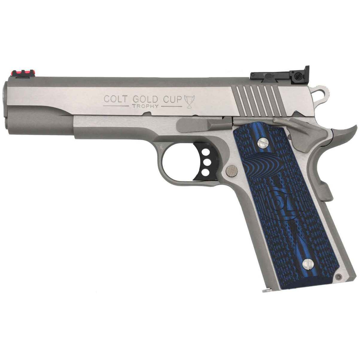 Colt Gold Cup Lite 9mm Luger 5in Stainless/Blue Pistol – 9+1 Rounds – The Colt Gold Cup series is the preferred choice for the modern competitor participating in any handgun challenge. True to it’s legacy, the newly redesigned Gold Cup starts with the features that seasoned shooters want: a National Match barrel, competition ergonomics, adjustable rear sight, and those stunning Colt competition-blue G10 grips. The Colt Gold Cup is ready to rise through the ranks right alongside you.