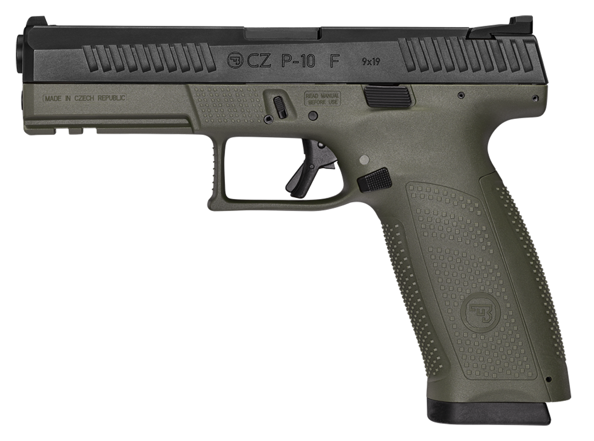 CZ’s P-10 pistol features a grip angle which avoids that “brick-in-the-hand” feeling that has plagued many in the striker-fired genre, allowing it to point naturally. A mild palm swell, deep beavertail, and three interchangeable backstraps make the P-10 fit a wide variety of hands as if it were built for them. Its trigger is designed to minimize creep and stacking and rebounds with a short positive reset, meaning single shots can be meticulously placed while follow-ups are effortless. The fiber-reinforced polymer frame and hardy nitride finish are made for the daily grind. A generous trigger guard allows use with gloved hands while being undercut to allow as high a grip as possible. It features an ambidextrous slide release and swappable mag release.