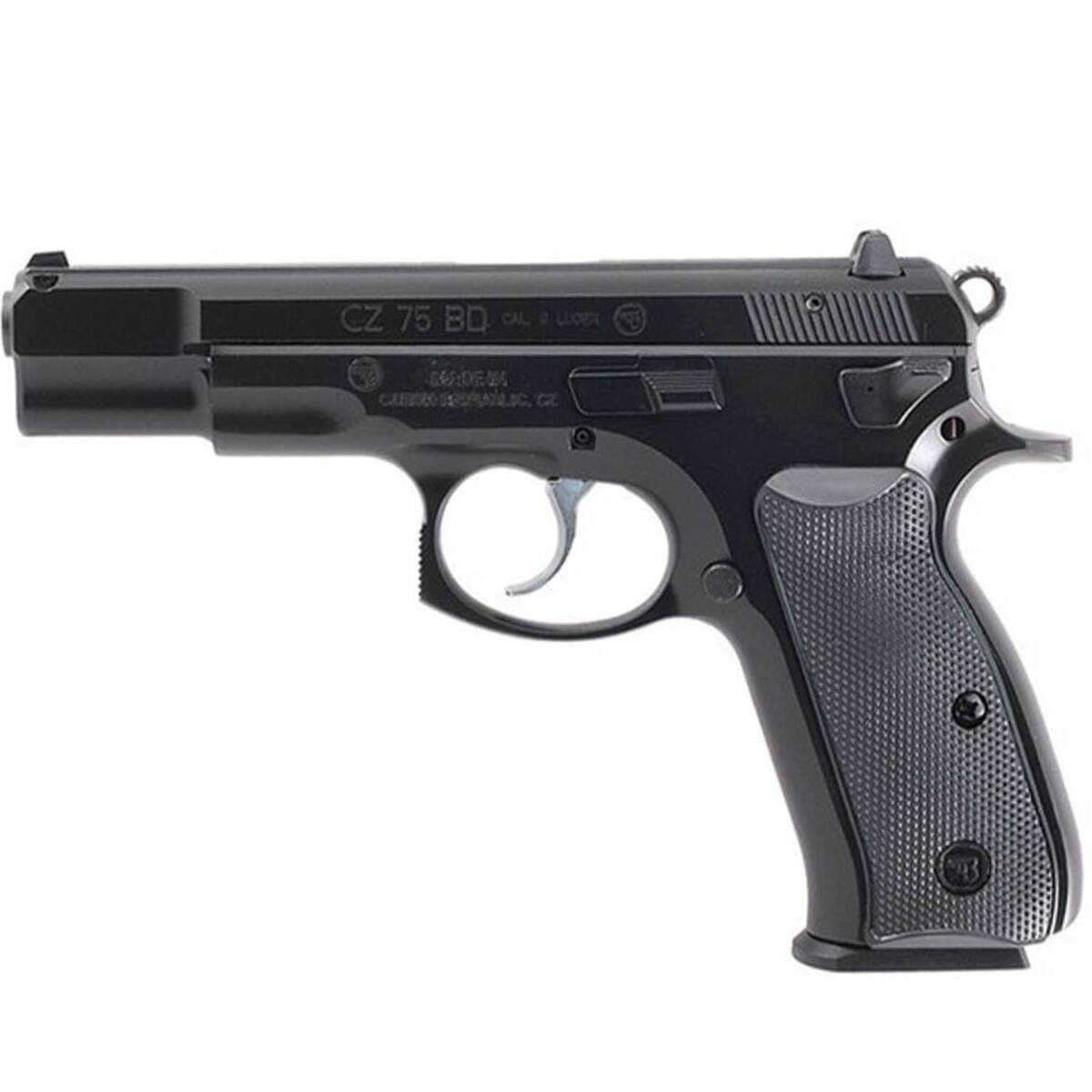 CZ USA 75 BD 9mm Luger 4.6in Black Polycoat Pistol – 10+1 Rounds – Designed in 1975, the CZ 75 is the flagship model of the CZ handgun line with over one million produced. An entire family of pistols is available based on the basic CZ 75 design: compacts, decockers, single action only, ambidextrous, alloy frames as well as competition pistols.