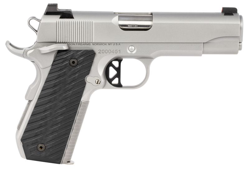 Little brother to the Valor, the Dan Wesson V-Bob is a Commander-size variant with a bobbed mainspring housing to boot. Ideal as a concealed carry piece, it has a shorter 4.25 Match-grade barrel. The V-Bob features a set of tapered grips, tactical ambidextrous safety, and style slide stop is recessed, allowing for the use of laser grip panels. The new Dan Wesson inset serrations knock down the glare between the sights a serrated U-notch in the rear and a tritium with a large orange ring in the front.