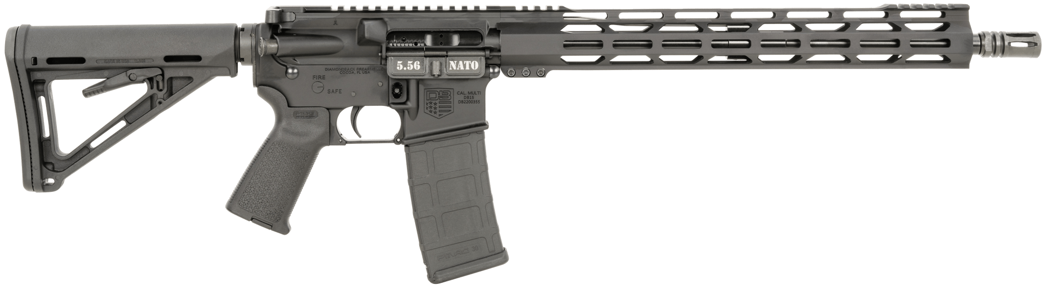 Diamondback Firearms DB15, Semi-automatic Modern Sporting Rifle, 223 Remington/556NATO, 16″ Medium Profile Threaded Barrel, Carbine Length Gas System, 4150CrMov Black Nitride, 1:8RRH Twist Rate, 1/2X28 Thread Pitch, 15″ M-LOK Hardguard, Hardcoat Anodized Finish, Magpul MOE Pistol Grip and Carbine Stock, A2 Flash Hider, 30 Rounds, 1 Magpul PMAG DBK1717K005