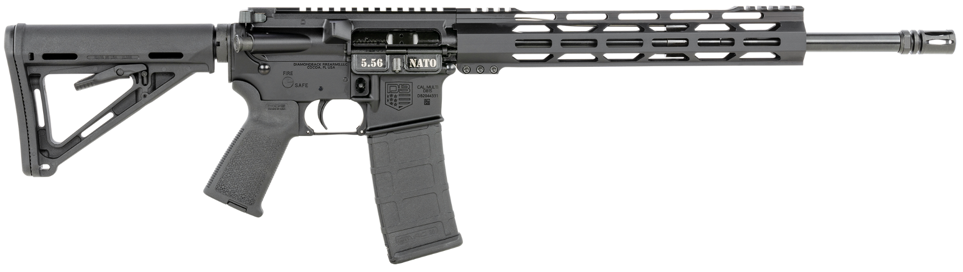 Diamondback Firearms DB15 rifle uses a gas-impingement system and high quality CNC machined components. Features a 4140 chrome moly barrel, A3 Flattop upper receiver, carbine length gas system, 12″ M-LOK rail, MOE grip, A2 Flash hider muzzle and a Magpul MOE Carbine stock. Made in the USA.