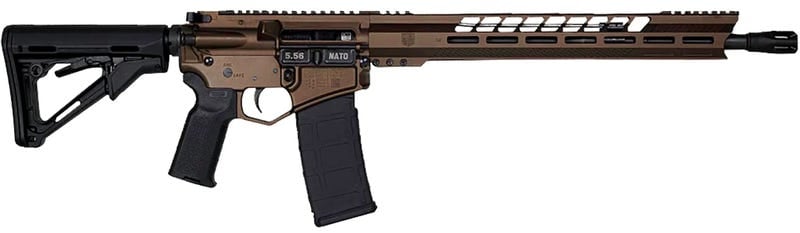 The DB15 begins with 7075-T6 aluminum receivers and a Diamondback Black Gold lower, finished in Midnight Bronze Cerakote for a rugged and distinct look. Its 16-inch 4150 chrome moly barrel is nitride-coated for longevity and topped with a flash hider. A mid-length gas system and shot-peened 8620 steel bolt carrier group ensure smooth and reliable operation across a wide range of conditions.