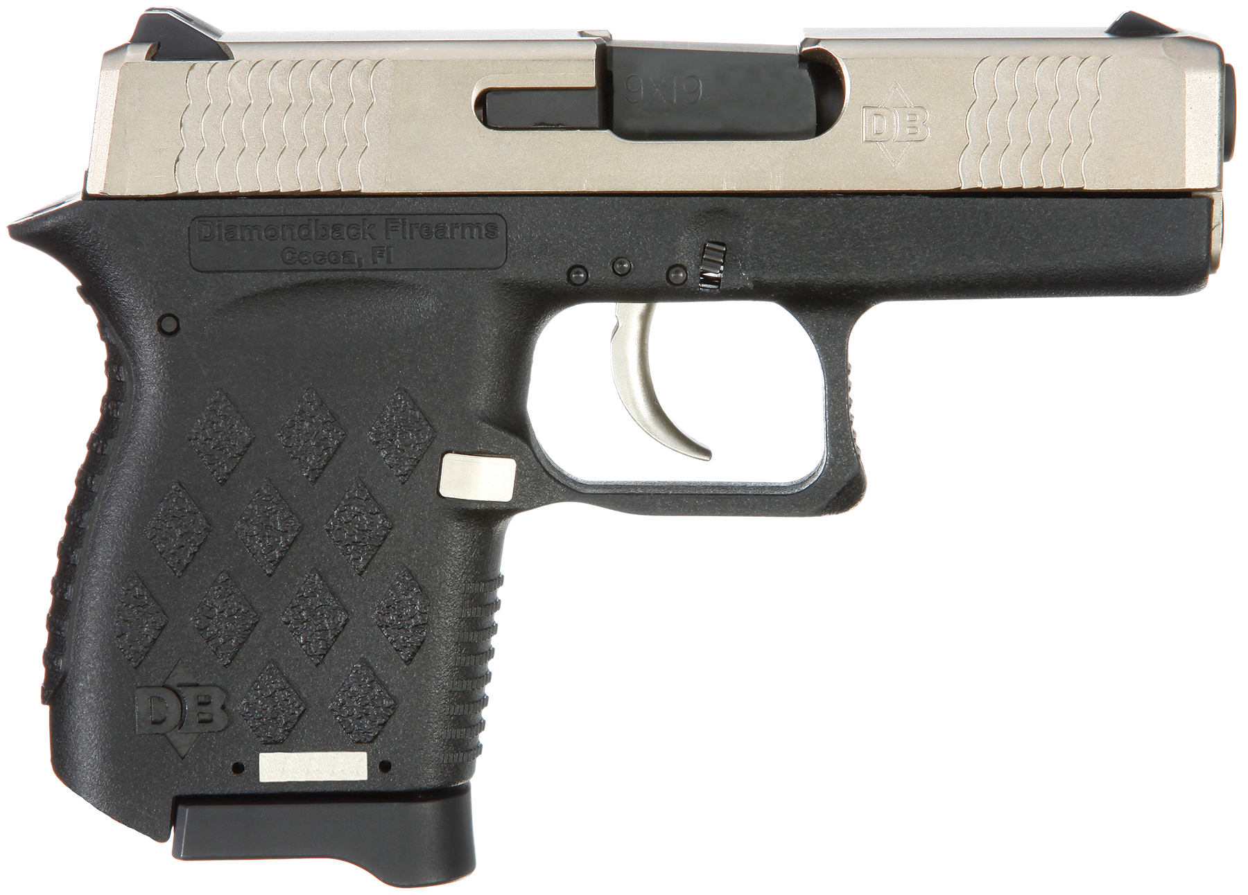 The Diamondback DB9 is an American made semi-automatic striker-fired pistol chambered in 9mm with a 6 plus 1 round capacity. This micro-compact pistol features a 3” barrel against a total length of 5.6”. An excellent concealed carry gun, the DB9 features windage adjustable sights, while the Finite Element Analysis slide and barrel are designed to reduce felt recoil.