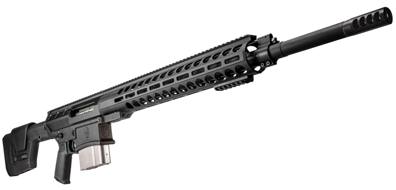 If youre looking for a jaw dropping AR-style rifle in a big boy caliber, you just found it. No matter your mission, the Kivaari can do the job. Long range accuracy, ballistics, you name it, the .338 Lapua has you covered. It’s a takedown design also.This is the most covert semi-automatic gas operated long distance rifle around and uses DRDs patented quick take down rifle technology. Measuring in at an OAL of 47 inches, you might not think that the Kivaari embodies discreet what DRD is known for but DRD has eliminated the need for bulky long gun cases. Compact portability is fundamental to the brand; if you cant carry it discreetly in the field then its not a DRD rifle. The Kivaari can go from box-to-built in less than 60 seconds and is a sub MOA powerhouse chambered in .338 Lapua Magnum. If youre not quite convinced yet, the Kivaari features an ambidextrous safety & bolt catch and arrives in a compact hard case. Includes 2 magazines.