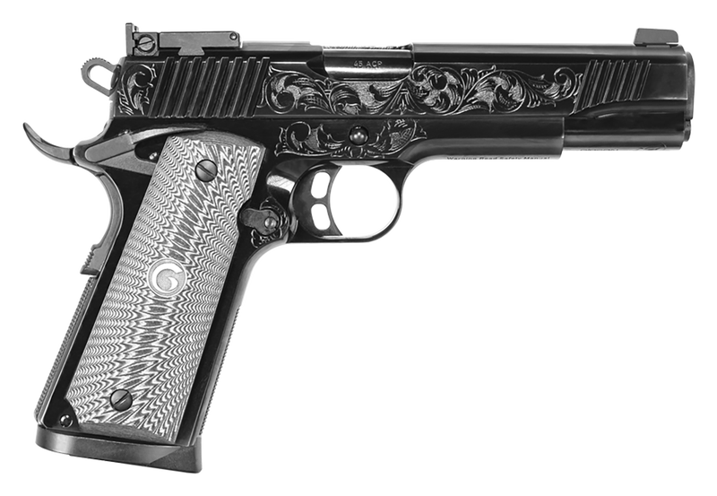 This is one of the products you run into in life where you say this can not be. Girsan took their MC1911 Match Lux and brought the finish up two levels, had the master engravers hand engrave the slide and frame, moved the markings to the perimeter of the pistol profile for a cleaner look, hard black chrome the slide and frame to give you a deep dark consistent color, added a custom leather lockable carry case and then added Ivory Lite grips. The Girsan MC1911 Match Lux gives you a work of art in a traditional 1911 configuration.