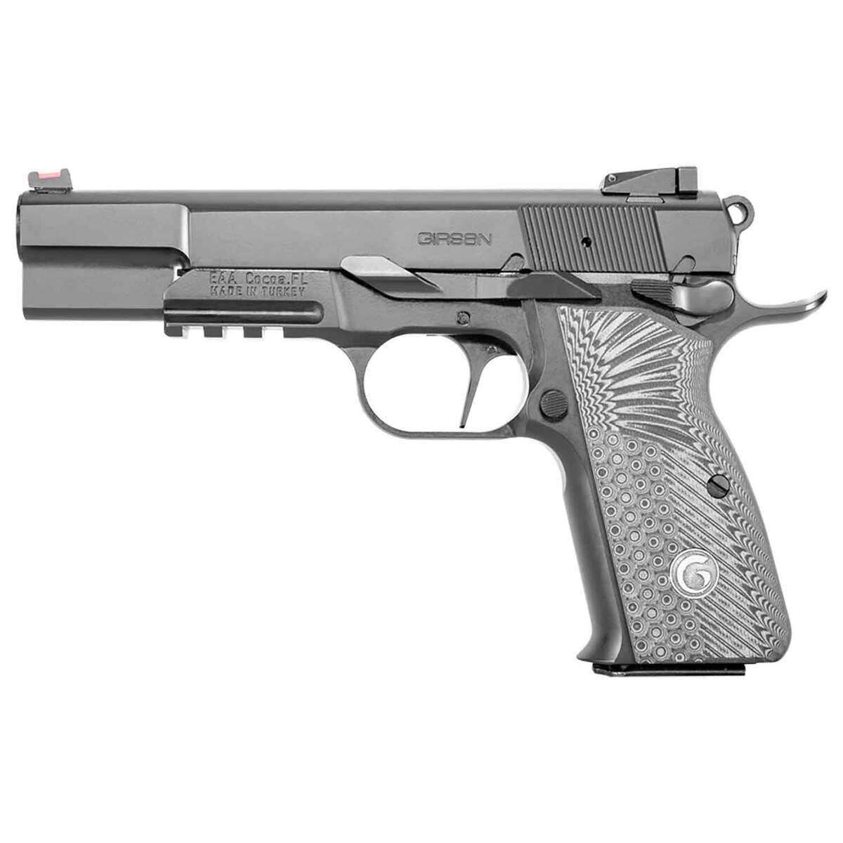 EAA Girsan MCP35 9mm Luger 4.87in Blued Pistol – 15+1 Rounds – Committed to high quality firearms EAA & Girsan are pleased to introduce the second generation of MCP35 pistols with modernized features and improved ergonomics based on the classic John Browning design. The all-steel construction, short recoil operated MCP35 OPS offers a wealth of features for both the average shooter and competitive shooter including an extended beavertail, fiber optic front sight, G10 grips, straight clean-break trigger, beveled magwell & windage/elevation adjustable rear sight.