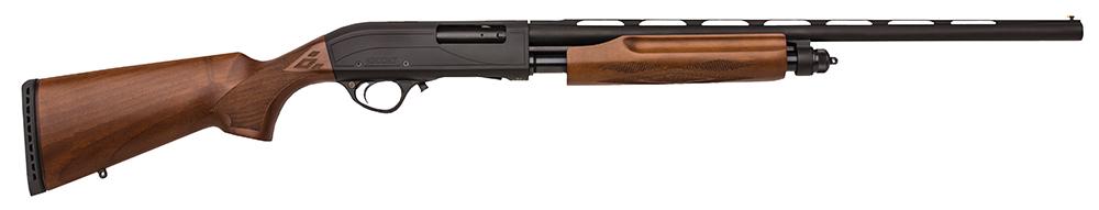 This Youth model from Escort is a pump-action 20-gauge shotgun with a 3-inch chamber. A 22-inch ventilated rib barrel is adorned with a bead front sight to aid in quick target acquisition. Three interchangeable choke tubes allow users to fit their shot pattern to a given task. The wood stock offers a handsome contrast against the black satin finish of the receiver and barrel. The Youth model features checkering at the grip to ensure a secure grasp while a ventilated recoil pad cushions users shoulders. Swivel studs allow for easy sling installation.