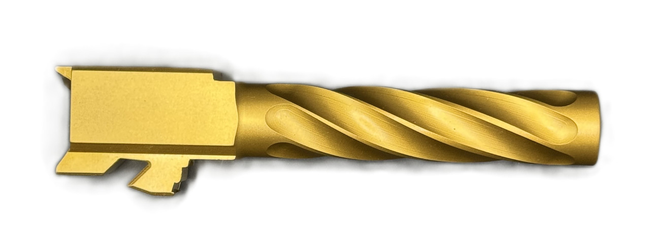 This is a precision-grade match barrel designed for the Glock 19. If you’re serious about improving your pistol’s accuracy and building a standout custom build, this barrel is a core component. The aggressive spiral fluting reduces weight and aids in cooling, while the durable gold finish ensures it becomes the visual centerpiece of your handgun. Miami Shooters Supply guarantees this premium Glock barrel is shipped directly to you with speed and reliability.