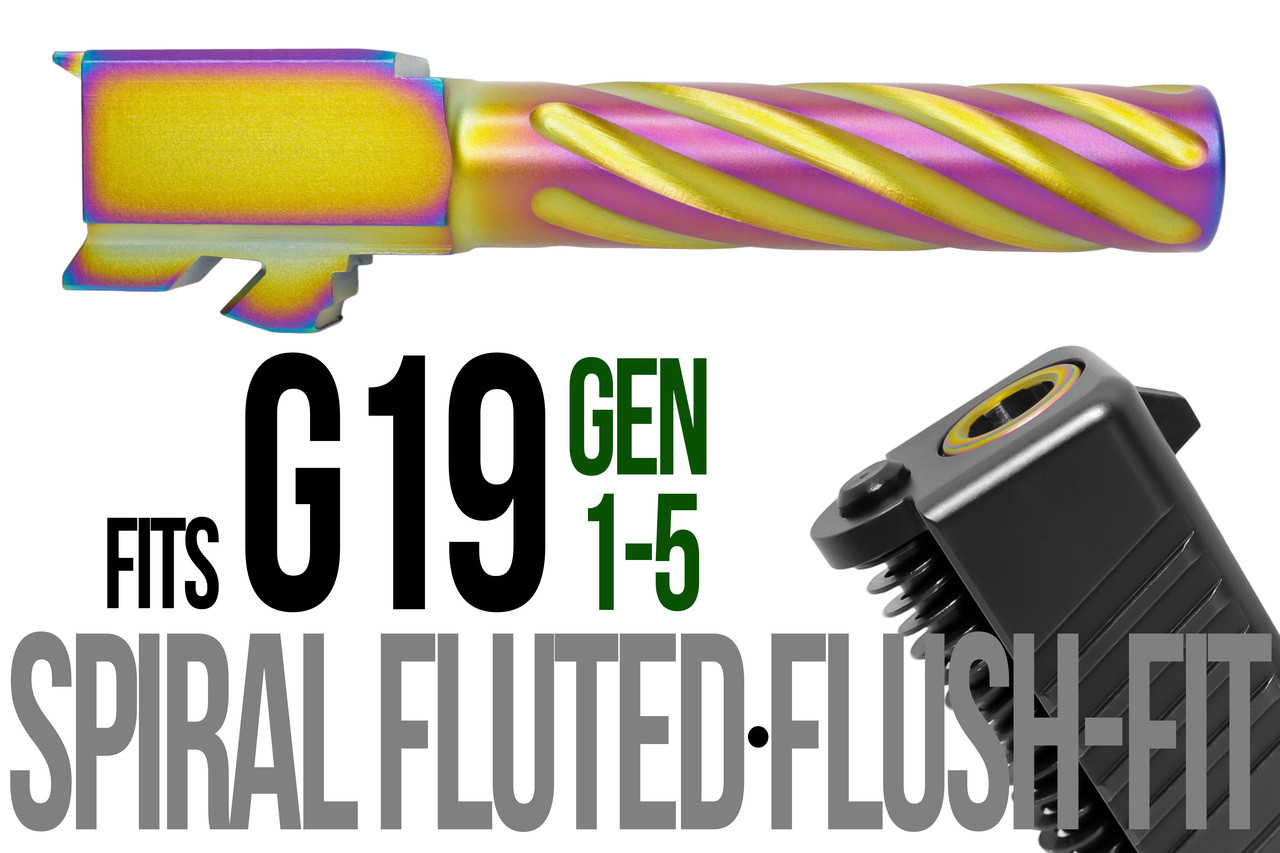 If you’re looking for a reliable, high-performance barrel that delivers both precision and a standout appearance for your Glock 19, this Thick Spiral Flush Fit Barrel is the component you need. Designed for the serious shooter who values both function and form, this 9mm barrel from Miami Shooters Supply features a durable chameleon PVD coating and a unique spiral fluting that reduces weight while enhancing heat dissipation. It’s a direct-fit upgrade that improves your pistol’s accuracy and gives it a custom look without any gunsmithing required.
