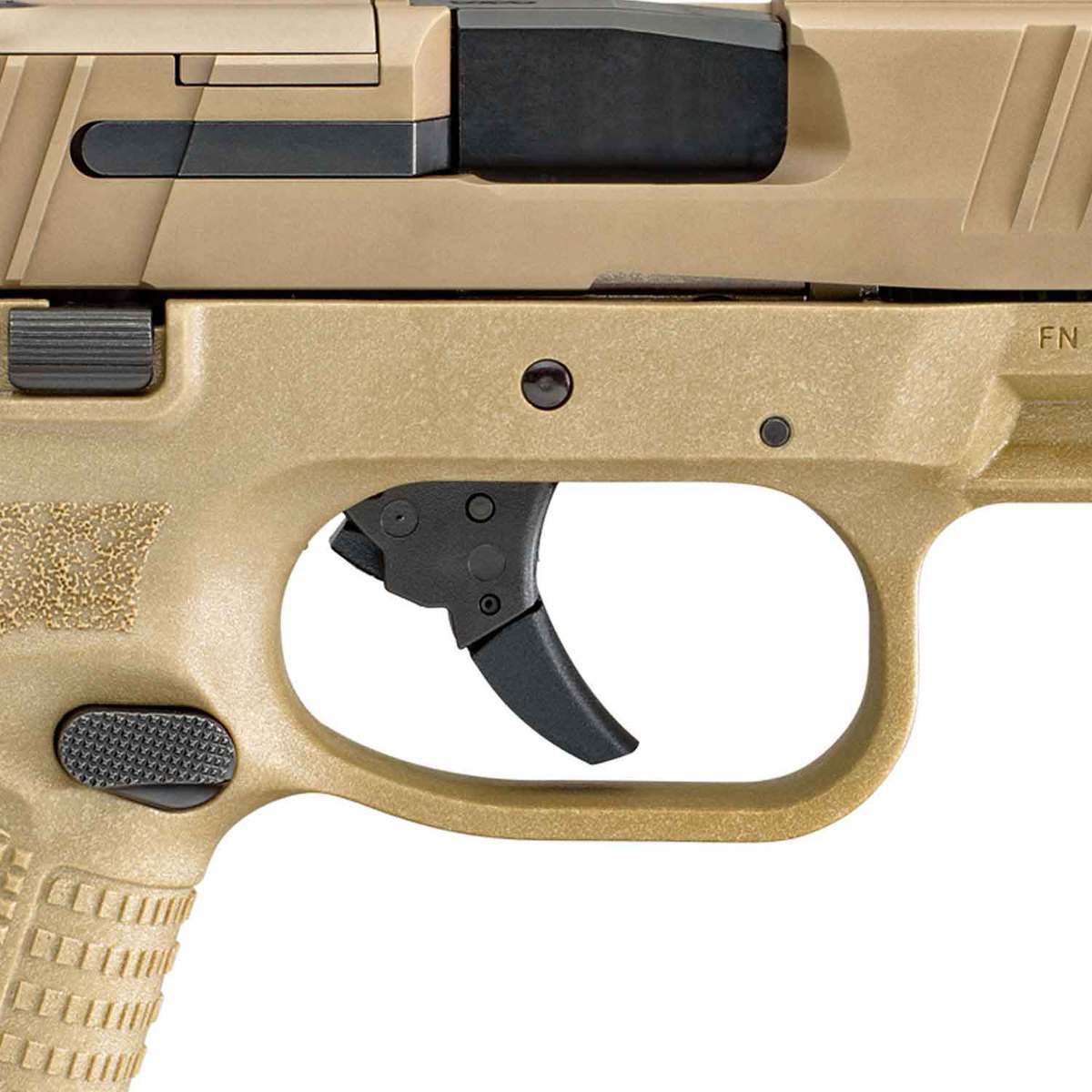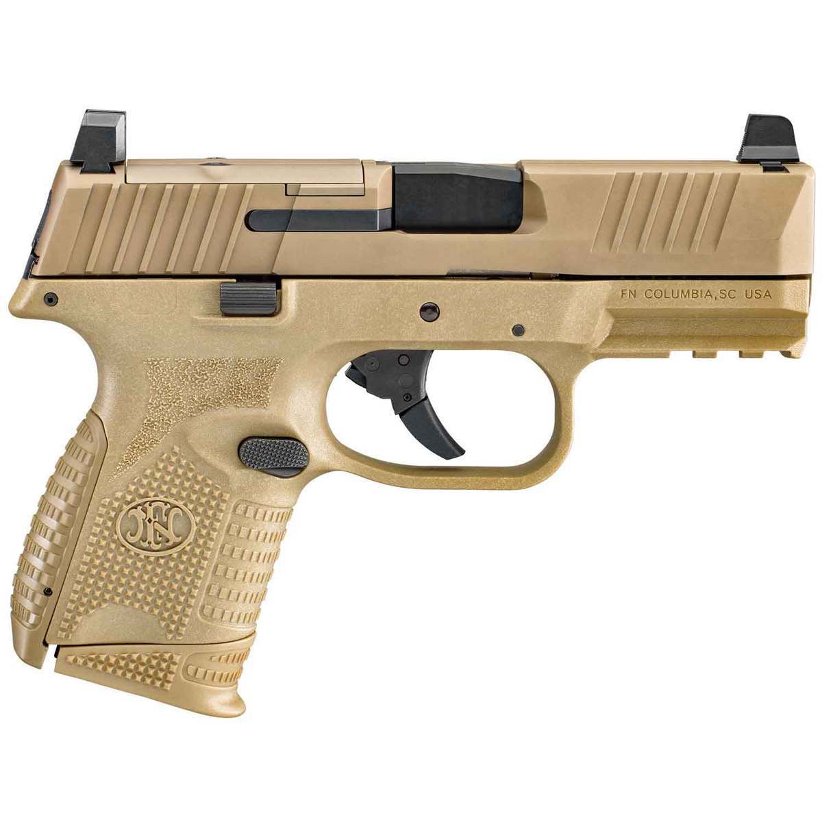 FN FN 509 Compact 9mm Luger 3.7in FDE/Black Pistol – 15+1 Rounds – Full-size punch in a compact package with FN’s patented Low-Pro Optics Mounting System and unparalleled modularity of the FN 509 platform, the FN 509 Compact. The pistol is 9mm and striker- red with 3.7-inch barrel, and the capability to accept all higher capacity FN 509 magazines. The patented FN Low-Pro Optics Mounting System accepts nearly all commercial miniature red dot optics and features blackout iron sights that co-witness. The improved controls aid in manipulation, improved texturing on the two included backstraps provides better recoil management.
