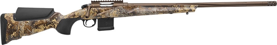 Enhance your varmint hunting experience with the Franchi Momentum Varmint Elite rifle. This bolt-action rifle is chambered in .224 Valkyrie and features a 24″ barrel with a TrueTimber Prairie finish. The receiver is coated in a sleek Midnight Bronze Cerakote for added durability and style. The rifle weighs 9.4 lbs, making it sturdy and reliable for your shooting needs.