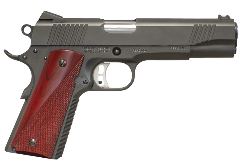 The Fusion Freedom Reaction is a versatile 1911 with excellent performance, accuracy, and reliability. It comes chambered in 10mm with a 5 inch target crown barrel. Features include dovetail sights, beavertail safety, Cocobolo grips, and an 8 round magazine. Pick one up today at the best price online from GrabAGun!