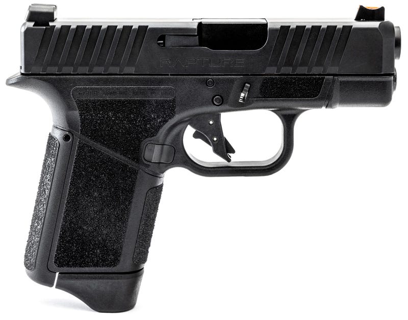 The Raptur-X features a polymer frame with a sleek black finish, providing a lightweight yet sturdy foundation. This model comes with a 12-round capacity, offering ample firepower for various scenarios.
