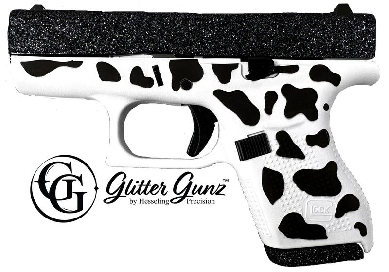 - Slide Finish: Glitter Cow Print