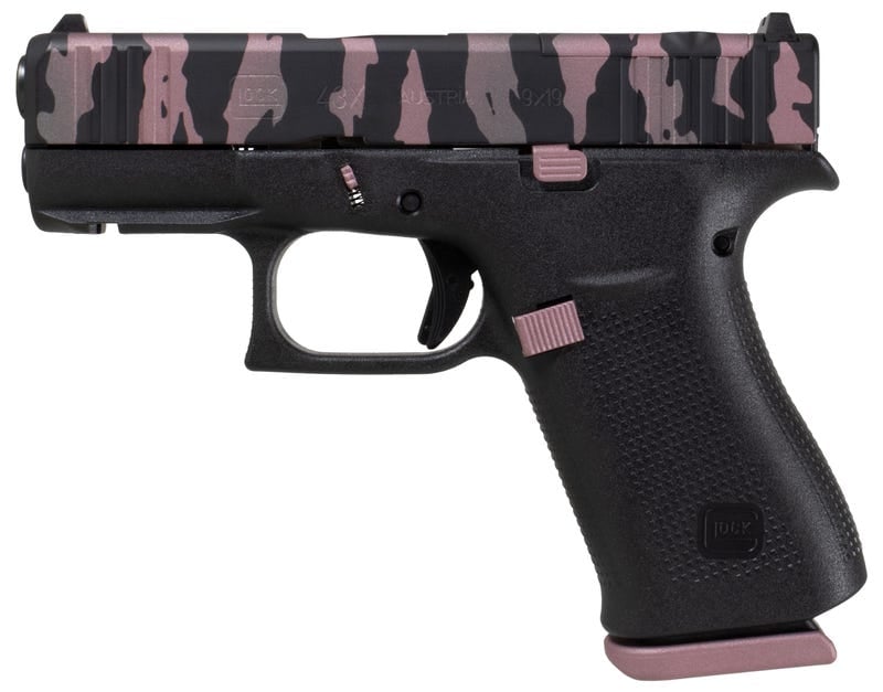 The Glock 43X MOS features a distinctive Pink Tigress polymer frame, offering a unique aesthetic without sacrificing the robust reliability Glock is known for. Its Modular Optic System (MOS) allows for easy mounting of various optics to enhance accuracy, while the front slide serrations ensure a firm grip for effortless slide manipulation. The Safe Action System provides a consistent, smooth trigger pull, enhancing safety and user control without a manual safety.