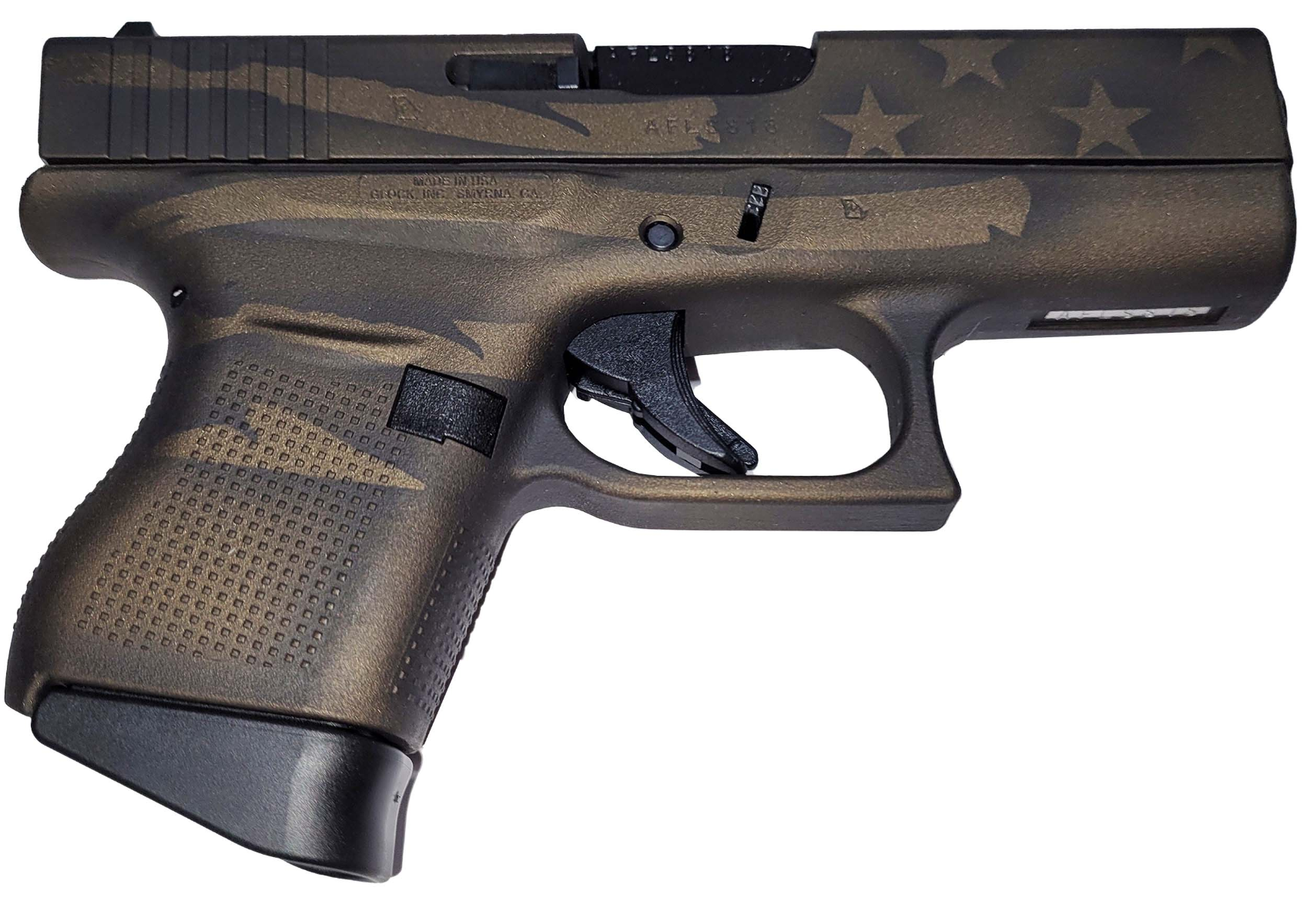 FFL Transfer & Firearms Laws for Glock G43 9mm Luger (9x19 Para) 3.39 Barrel 6 Rounds Battleworn Flag