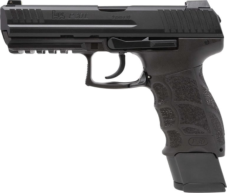 The HK P30L V1 Light LEM is a precision-engineered 9mm semi-automatic pistol built for professional-grade reliability and performance. With a 4.45-inch polygonal-rifled barrel, black Cerakote slide, and DAO Light LEM trigger, this pistol balances accuracy, control, and smooth trigger feel. It offers a 17+1 or 20+1 capacity, making it ideal for duty, defense, and range use.