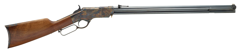 The iron-framed 1860 Henry rifle was manufactured in less than 400 units, but this Iron-Framed Original (actually steel-framed) makes it possible to acquire your own example of this short-lived piece of history. The Iron-Framed Henry Original is true to Henry’s 1860 patterns and patents, and virtually identical aside from concessions necessary to adapt to the .44-40 centerfire rounds that replaced the long-obsolete rimfires. This rifle uses a thoroughly modern steel receiver with a striking color case hardened finish and a matching, period-correct, crescent buttplate. It is fitted with a one-piece blued steel octagonal barrel and magazine, fancy grade American Walnut stock, a classic folding ladder rear sight and blade front, traditional half-cock safety hammer notch, and no modernized manual safety.