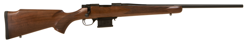 The M1500 Mini Hunter from Howa stands as a testament to the timeless elegance of classic firearms while integrating the functionalities of contemporary design. The Walnut-finished wooden stock offers a nod to traditional firearm aesthetics and provides a sturdy and comfortable grip for the user. The 22-inch heavy barrel, beautifully finished in blued steel and featuring a threaded muzzle, ensures consistent accuracy and adaptability to various muzzle devices.