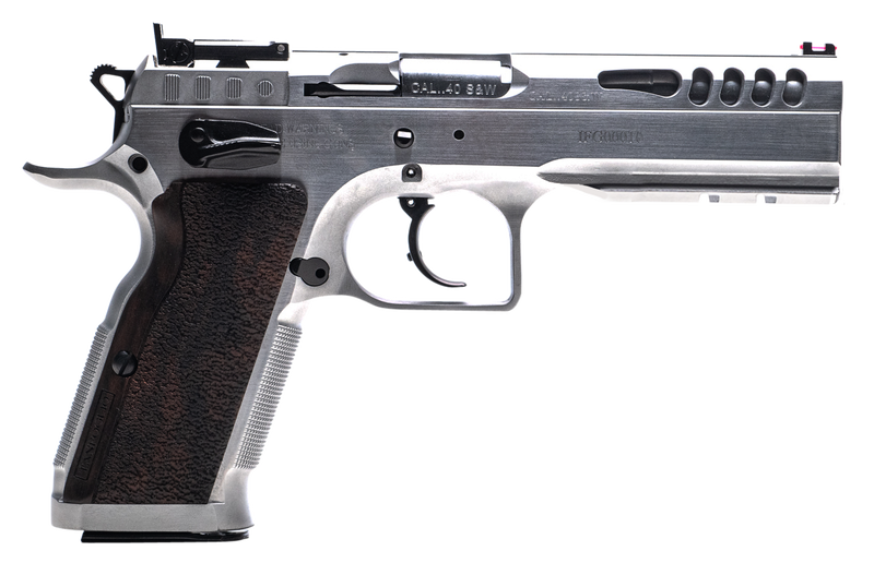 The Defiant STOCK Master uses a lightened slide like the one found on the Limited Custom to quicken cycle time and lockup. This model ships with 2 magazines, ambidextrous safeties, hard chromed finishing, fiber optic front sight, and the fully adjustable rear SuperSight.