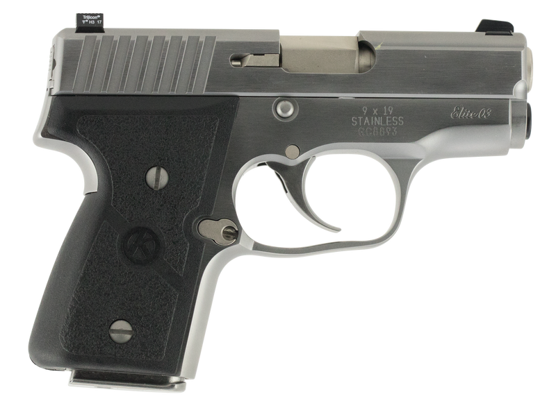 The Kahr MK Series offers the highest quality, thin profile subcompact, pocket carry handgun on the market today. The Kahr MK Elite model features a polished stainless steel finish and laser etching on the frame. The match grade barrel has a polished feed ramp and polygonal rifling. The MK Elite also features a wraparound textured nylon grip and a smooth DAO trigger. This model has a 3″ barrel, black grip, stainless steel frame and slide, Tritium night sights, and comes with two 6-round flush floor plate 9mm magazines and one 7-round extended grip.