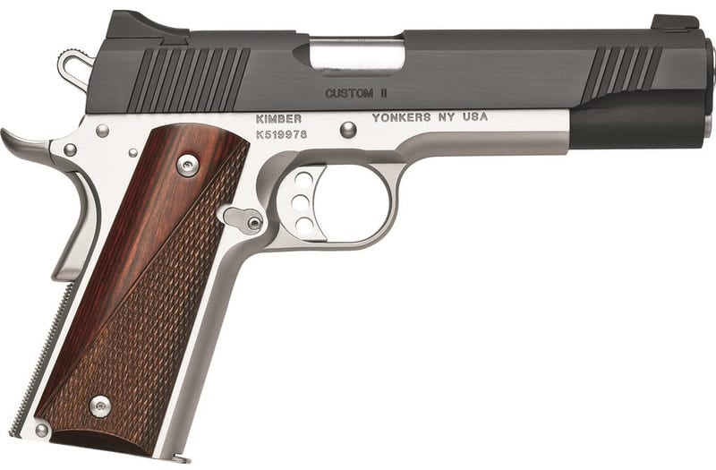 Setting the standard against which all other 1911 models are measured, the Custom II offers no-nonsense features that promote intuitive operation and absolute dependability. The Kimber Custom II is one of the finest all-around pistols available, complete with a brushed-polished carbon slide, stainless steel frame and rosewood grips