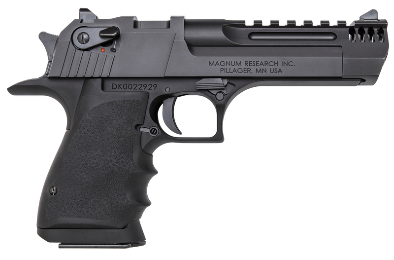 The Magnum Research Desert Eagle Mark XIX L5 in 44 Remington Magnum is a rotating bolt, semi-automatic pistol designed to handle magnum handgun cartridges. It is constructed using the latest CNC machine technology providing exacting quality with tight tolerances, creating a work of art and a precision firearm. This Desert Eagle features a Weaver style accessory rail for easy optic mounting and the barrel is fitted with an integral muzzle break.