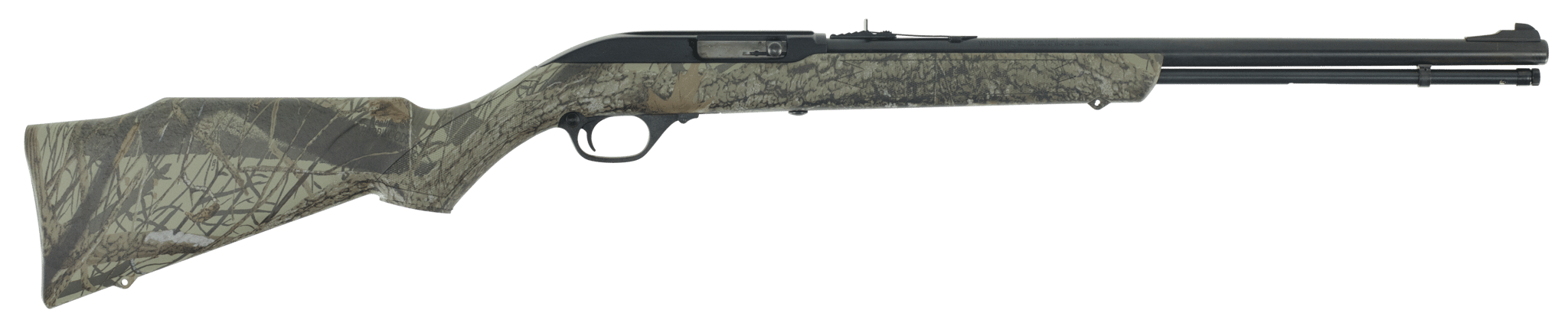 Caliber 22 Long Rifle only Capacity 14-shot tubular magazine with patented closure system Action Autoloading side ejection manual and automatic last-shot bolt hold-opens receiver top has serrated non-glare finish cross-bolt safety steel charging handle. Stock Monte Carlo hardwood with camouflage pattern full pistol grip. Barrel 19 with Micro-Groove rifling (16 grooves). Twist Rate 1.16 r.h. Sights Adjustable open rear ramp front sight. Receiver grooved for scope mount. Overall Length 37.5 Weight 5.5 lbs.