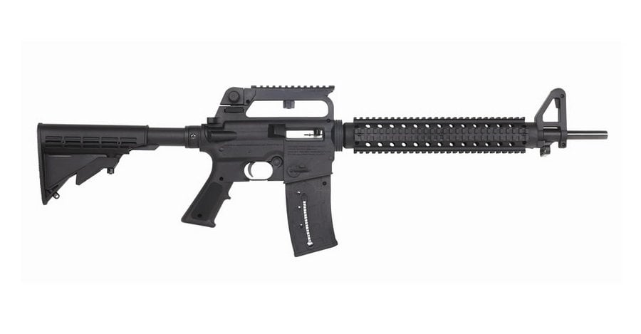 The Mossberg 715T is a semi-automatic rimfire rifle chambered in .22lr that features M4/AR-15 ergonomics and aesthetics. The barrel is 18 inches long and has a 1:16″ twist. Magazines are detachable and are available in multiple different rounds counts.