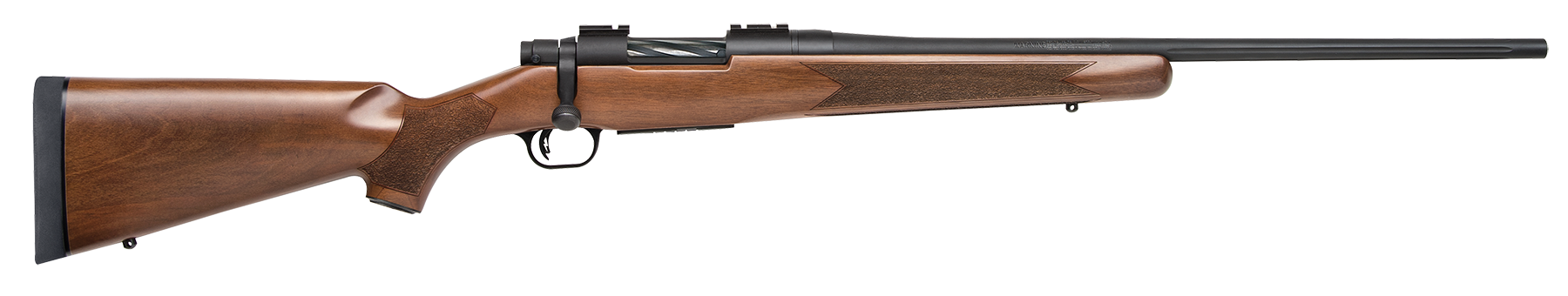 A bolt-action rifle made for big game hunting, the Mossberg Patriot Hunting delivers rich features at an attractive price. The fluted barrel of this rifle improves cycling while the patented Lightning Bolt Action LBA user-adjustable trigger system offers a 2- to 7-pound pull. The spiral fluted bolt with a streamlined bolt handle is made for easy operation and the barrel which comes with a Marinecote or Matte Blue finish featuring a recessed crown. The Patriot Hunting is available with a walnut of laminate stock, both of which have checkering on the grip and forend for a positive hold.