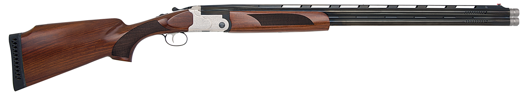 The Mossberg Silver Reserve II is a value priced over-under shotgun perfect for hunting and sporting activities. It features an ambidextrous tang safety that also functions as a barrel selector, set of five screw-in choke tubes (F, IM, M, IC, C), 3″ chamber (2 ¾” in the 28-gauge), ported vent rib blue finished barrels, black walnut stock and forend, single bead front sight (fiber optic available in sporting models), shell ejectors, dual locking lugs, and wrap-around scroll engraving on the receiver.
