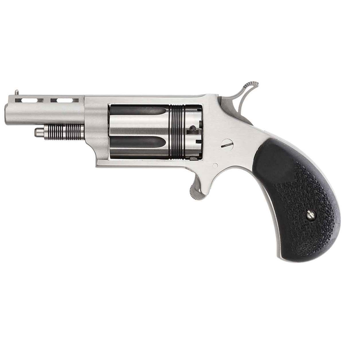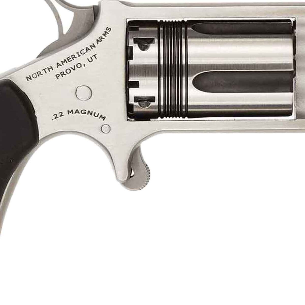 North American Arms Wasp 22 WMR (22 Mag) 1.63in Stainless Revolver – 5 Rounds – The Wasp 22 Magnum mini-revolver is a great concealed carry pocket gun. The 22 Magnum cylinder can be used with all popular .22 Magnum ammunition, including .22 Magnum shot shells. This model comes with a special 22LR conversion cylinder made longer to easily fit in the.22 Magnum mini-revolver. The Wasp has black pebble-textured rubber grip, a 1.625in barrel with a vent bar, and a bead front sight. It weighs 6.5oz and has a 5-shot capacity. Using the half-way notch cylinder, the hammer may rest safely and securely away from live or empty chambers without chance of accidental discharge.