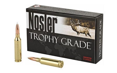 From a weekend on your land to help fill your freezer to the hunt of a lifetime in a distant land fro a trophy it all comes down to your ammunition and how it performs, Nosler Trophy Grade ammunition will have the right load for your target. Manufactured to Nosler’s strictest quality standards, Trophy Grade Ammunition uses Nosler Custom brass and bullets to attain optimum performance, no matter where your hunting trip takes you.