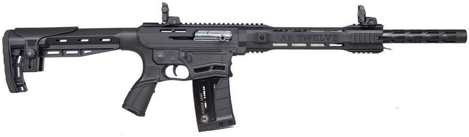 The AR-12 shotgun is semi-auto, gas-operated shotgun that looks and functions like an AR-15 rifle. AR-12 Shotguns are designed to be a multi-purpose that will fill the need of tactical, home defense, hunting, and sporting customers. The shotgun is chambered for 3-inch and has a 20-in barrel with a manual safety. Designed for tactical use with its AR platform, steel barrel this shotgun is made with performance and durability in mind.