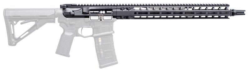 The Complete Upper is constructed of billet machined 7075-T6 aluminum with proprietary Extended aluminum hand guard w/ Magpul M-LOK mounting system and integrated upper/hand guard stainless steel anti-rotation pin. Its match grade 416R stainless steel barrel has polished crown/feed ramps, and is threaded. The upper also utilizes enhanced black nitride M16 BCG, lightweight forward assist, Radian Raptor-SD suppressor-optimized ambidextrous charging handle, and a direct impingement gas system.